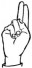 На ћирилици написано АНИТА БЕТЕГАЛО састоји се из 13 слова [?]. Исписано ћириличном једноручном азбуком за глувонеме: